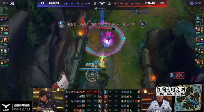 北京时间6月18日下午,LCK夏季赛第一周的周六揭幕战由GEN对阵HLE!两队的硬实力差距明显,Peanut的猴子从开局起不论控图还是gank的节奏都压制了HLE打野蔚,Chovy的阿兹尔在中期小龙团战中大招推回多人,帮助队伍团灭对方,最终GEN速战速决2-0轻取HLE!