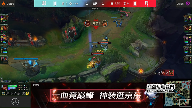 23分钟V5众人推进中路二塔,LGD从侧面突袭想要发起团战,天使和塔姆第一时间保下队友,随后展开反打0换3击溃LGD,推掉中路二塔以后拿下了大龙Buff。25分钟V5已经大兵压境推进下路高地,拆塔的瞬间开团摧毁了LGD的防线,随后一路平推拿下比赛胜利,恭喜V5 2:0战胜LGD!