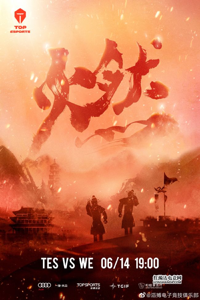 TES的海报标题是“燃”,WE主场西安的古城楼和大雁塔笼罩在一片火雨之中,两个剪纸兵俑一直在擦汗,足见两队的博弈实在是“太燃了”~TES在夏季赛首秀中1-2不敌JDG,“节目效果”和成绩不成正比,不知今晚TES哥能否从WE手中拿到首胜呢?
