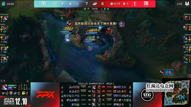 2022 LPL夏季赛常规赛第一周的比赛已经打响!首日的第二场比赛由2021全球总决赛冠军EDG战队对阵2019全球总决赛冠军FPX战队,两队各展身手激战三局,最终EDG在第三局凭借视野优势找到了最关键的机会,有惊无险地击败了FPX取得夏季赛开门红。