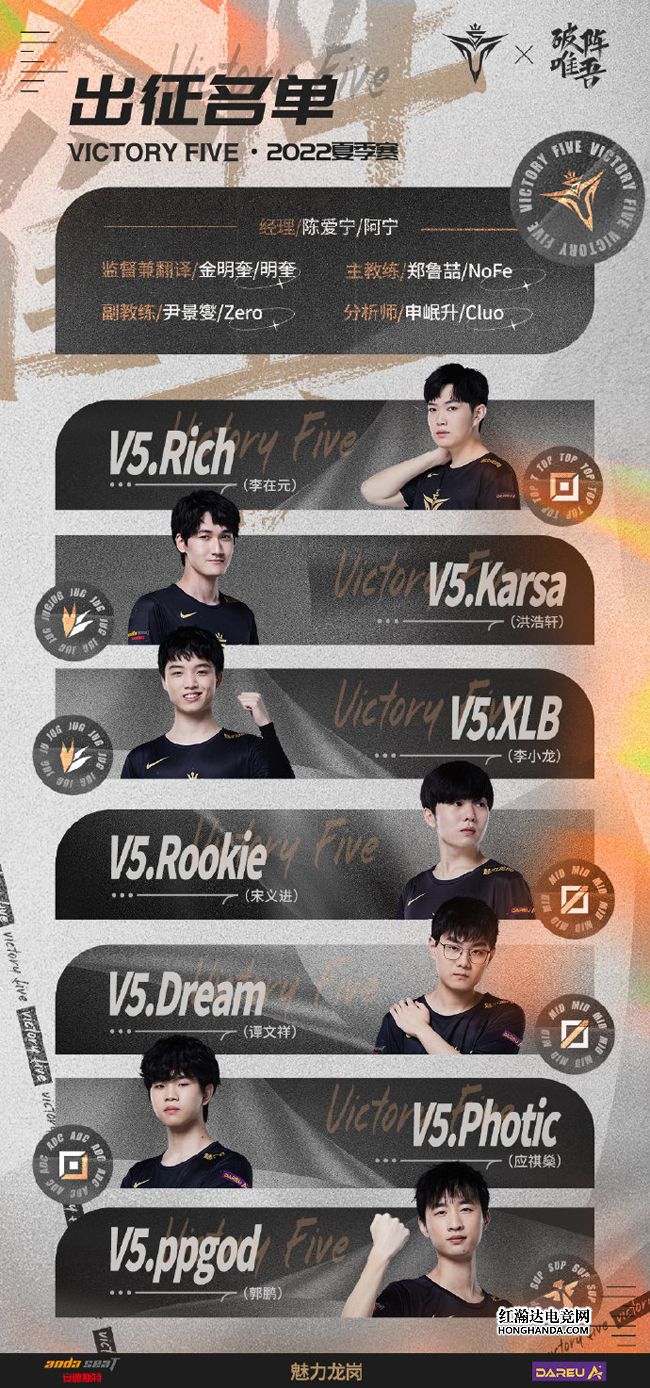 深圳V5电子竞技俱乐部 英雄联盟分部2022年LPL夏季赛大名单: