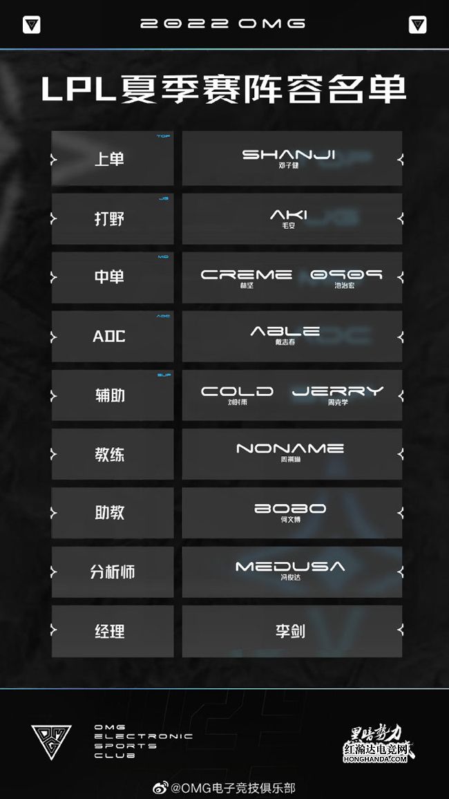 OMG公布LPL夏季赛大名单:原EDG二队中单0909加入