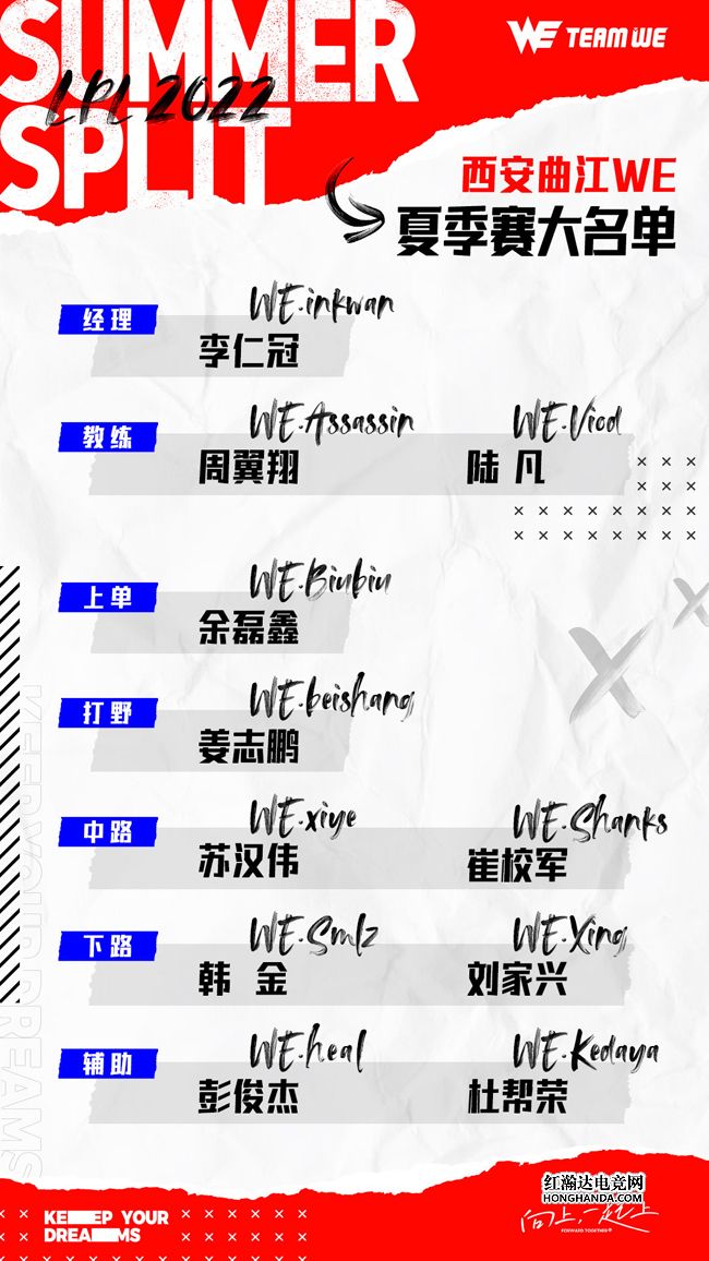 至此,西安曲江WE电子竞技俱乐部2022LPL夏季赛人员变动已公示完毕。