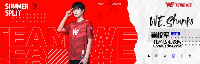 WE.Shanks(崔校军),西安曲江WE电子竞技俱乐部英雄联盟分部中单选手。2021年年度最佳新秀获得者,从LDL的决赛赛场战至LPL冒泡赛舞台,他的成长大家都有目共睹。希望夏天的他,依旧能保持着极为优秀的竞技状态,在队伍不同战术体系的需求下,展露锋芒。