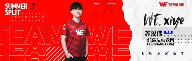 WE.xiye(苏汉伟),西安曲江WE电子竞技俱乐部英雄联盟分部中单选手。作为队内的领军人物,沉着冷静的“苏哥”总是能为所有队员带来极为有效的增益“Buff”。新的征程即将开启,他将继续利用自身丰富的大赛经验,沉稳的做出最准确的判断与指挥,带领队伍取得胜利。