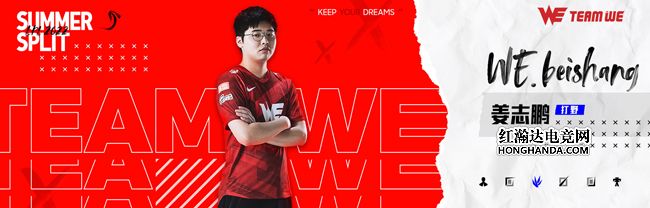WE.beishang(姜志鹏),西安曲江WE电子竞技俱乐部英雄联盟分部打野选手。自入队以来,各方对于他的野区统治力及协助指挥能力都给予了肯定。在经历了人员重组后,beishang选手更是扛起了主要的指挥职责,相信在夏季赛中,他一定会在不断的交流中更明晰个人的打野思路,和团队一起取得更大的进步。