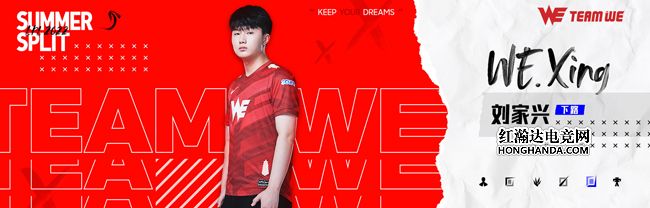 WE.Xing(刘家兴),西安曲江WE电子竞技俱乐部英雄联盟分部下路选手。自加入WE以来,Xing选手不断提高自我要求,认真学习顶尖下路选手操作技巧及打团思路,并加以运用到实战当中。相信在夏季赛中,他能和队伍共同进步,不断向着他心中顶尖下路选手的模板成长与靠拢。