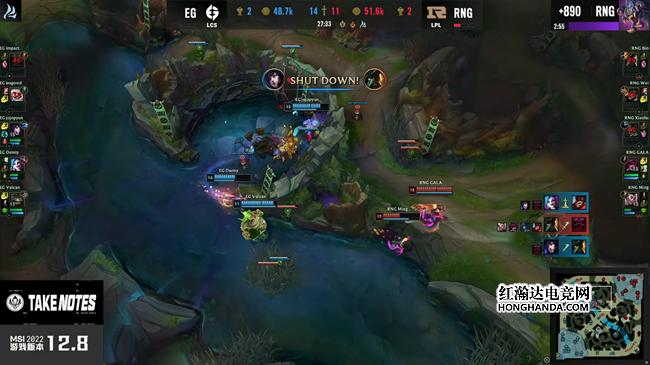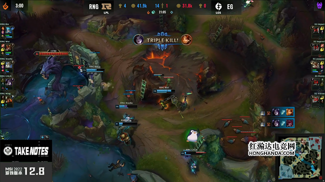 2022 MSI季中冠军赛半决赛首场对决由RNG战队对阵EG战队,这是RNG队史第一次在国际赛事BO5中面对北美战队。上一次LPL在BO5中对阵LCS赛区还要追溯到2019MSI半决赛,IG战队1:3不敌TL。有了前车之鉴的RNG整体的发挥都更加稳健,虽然在二三局里有一些细小的个人失误,但他们还是凭借更强的团队配合和运营决策3:0击败EG,队史第三次挺进MSI决赛!