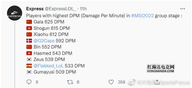 2022MSI季中冠军赛的小组赛阶段已经结束,对抗赛将于北京时间5月20日进行。近日外媒Express公布了本届MSI小组赛阶段的选手分均伤害排名:RNG三C全部登榜,GALA以625点分均伤害排名第一,Xiaohu 612排第三,Bin 552排第5。