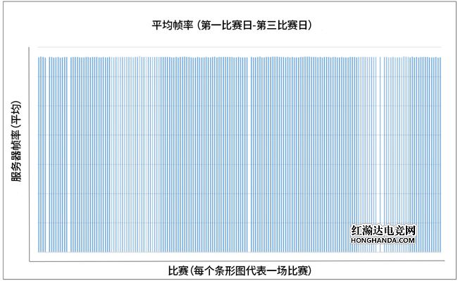 举个例子,我们曾假设问题是,也许游戏服务器没有保持稳定的帧率。于是我们提取了日志,并将数据放入一个查看工具中,把数据可视化为上面的图表(如上示意)。它显示了我们在每场比赛中都有非常稳定的帧率。所以这并不是职业选手报告的问题原因。