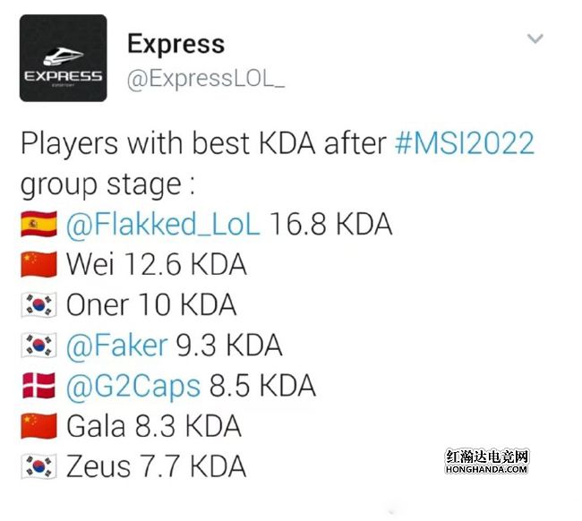 外媒公布2022MSI小组赛KDA排名:RNG打野Wei排名第二