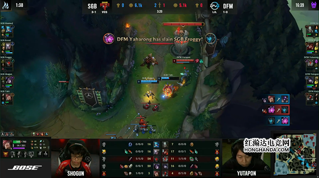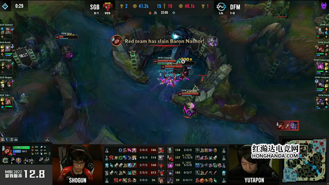 2022 MSI季中冠军赛小组赛第六日A组出线战,DFM战队必须战胜SGB才能保住争取加赛的希望,双方都选出了比较冷门的中单英雄希望出奇制胜。SGB想要通过他们擅长的前期进攻打开局面,但一波团战的决策失误让DFM获得了追上发育的机会,进入中后期以后SGB的后劲不足陷入被动,然而就在DFM大兵压境推进上路之时,SGB在绝境之下打出两波完美团战逆转了结局,淘汰DFM锁定了对抗赛资格!
