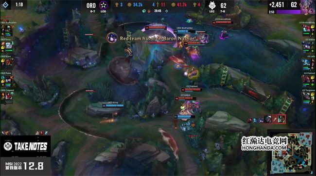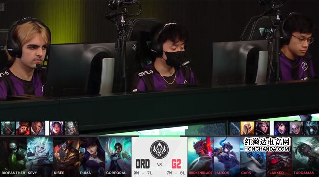 北京时间5月14日,2022MSI季中冠军赛的C组收官战由0-7的大洋洲赛区ORD直面7连胜的G2!两队的实力差距悬殊,G2稳扎稳打横扫ORD,成为今年MSI第一支小组赛八战全胜晋级对抗赛的队伍!