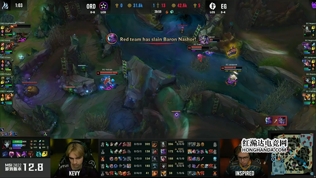 2022 MSI季中冠军赛小组赛第五日C组出线战,EG和ORD战队迎来了四循环的最后一次对决,已经六连败的ORD失去了最后的斗志,在对线期就开始一边倒地被EG碾压,从头到尾没能组织起任何有效的抵抗,EG也如他们所愿快速结束了比赛。