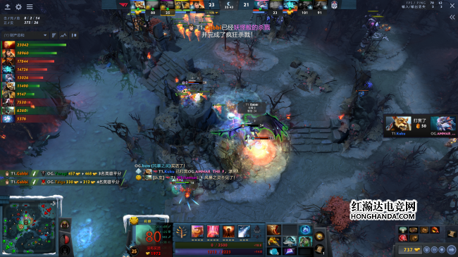 首局T1拿出火女加龙骑双核中期发力阵容,OG点出蓝猫加混沌双核阵容迎战。对线期OG上路精灵加混沌组合接连传来捷报,下路大鱼人加墨客也是捅穿T1下路。6分钟大鱼人冲塔击杀龙骑,火女TP支援击杀大鱼才帮T1开了张。对线期打完T1只有火女一个人经济正常,随后火女就开启进攻大旗,14分钟T1成功偷盾,可毕竟双拳难敌四手,一时间还是正面不敌OG。20分钟T1上路推进二塔,OG开雾侧面切入,T1技能齐放就地反打,这种5V5人齐阵地团还是T1更强,即便是经济落后很多还是硬生生的打了OG团灭,杀人破塔T1一波好起来。