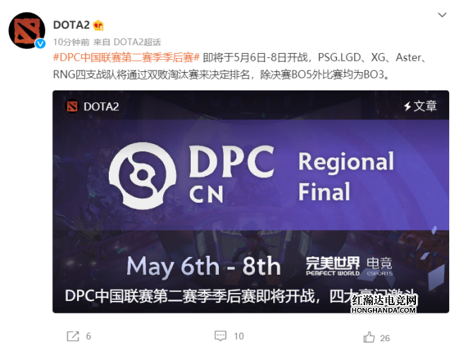 更多赛事相关信息将在后续公布,玩家可以关注DPC中国联赛第二赛季季后赛专题页或是官方微博、微信等资讯渠道。