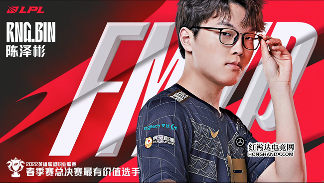 决赛五场比赛场场都精彩纷呈惊心动魄,而今年刚刚加入RNG战队的上单选手Bin凭借五场比赛稳定强势的表现,无论是在对线期还是在团战中都有出色亮眼的发挥,是RNG战队本次夺冠的最大功臣之一,最终荣获2022 LPL春季总决赛最有价值选手这一殊荣!祝愿他能够延续今天的火热状态,在2022 MSI季中冠军赛上带来更加亮眼的发挥!
