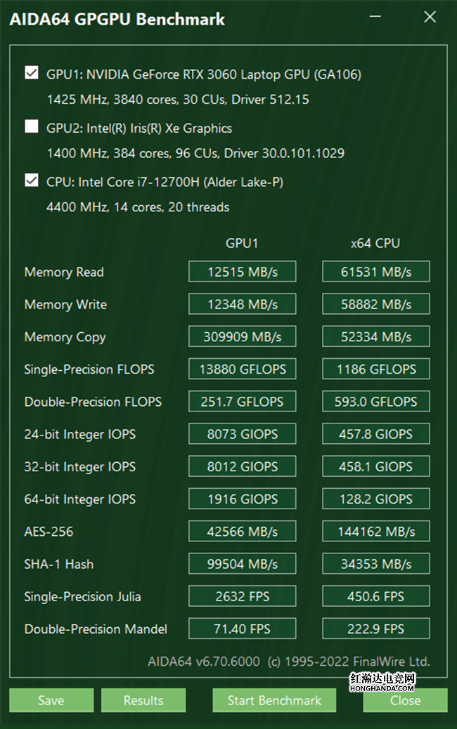 GPGPU是比较GPU和CPU的通用计算能力的基准测试,分别体现了它们的数据运算能力。