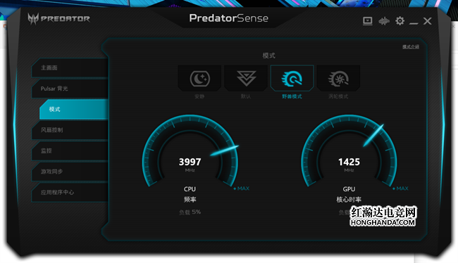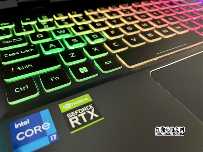键盘部分采用全尺寸设计,配有RGB炫彩背光,可通过设置中心进行个性化配置。键盘上还设置有独立的Turbo涡轮按钮,可以一键开启涡轮散热模式(该模式下风扇爆发强劲动力,极大的提升CPU和显卡性能,是你玩游戏时候的黑科技,一键狂暴模式,不用担心过热,游戏帧率和画面都有看得见的提升);数字小键盘区域还有掠夺者logo键,按下后可以快捷唤出设置中心,可以在安静,默认,野兽,涡轮多种性能模式间快速切换。