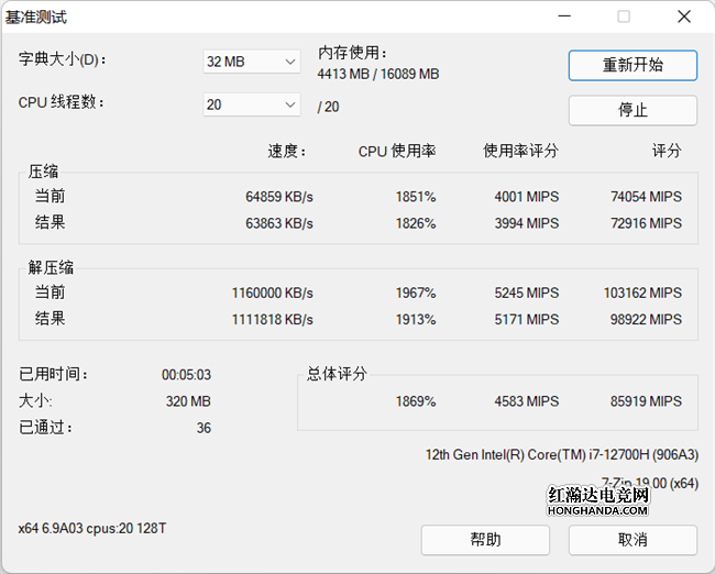 在7zip压缩解压测试中,压缩速率达到了64859 KB/s,解压速率达到了1160000 KB/s,相较上一代桌面级i9 11900k处理器压缩速率提升了接近10%。