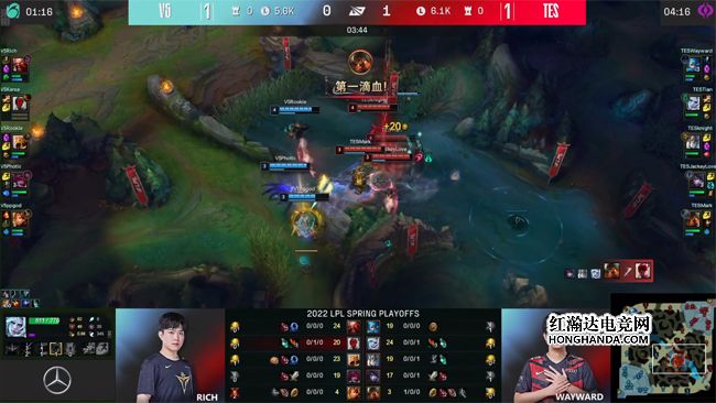 前期瑞兹在中路的补刀领先,可是V5频频联动节奏起飞,在峡谷先锋河道凭借人数优势打出0换2,V5中野各拿到一个人头,回身无压力收下先锋。TES中野节奏哑火,V5继续对下路施压,强势入侵TES下半野区并抓死了巨魔,佛耶戈放出先锋撞掉TES下路一塔的镀层,洛抓住厄斐琉斯落单回城的机会,W预判到厄斐琉斯闪现后撤的位置,帮瑞兹将其带走,霞反而单吃了V5下路一血塔,作为交换纳尔也单吃了TES上路一塔。17分钟TES偷小龙被发现,佛耶戈拼惩戒抢到了风龙,V5一路追击打出0换5团灭TES大获全胜!