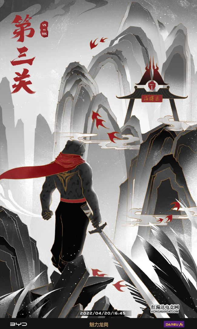 V5的海报标题是“第三关”,吉祥物黑豹武士手持长剑,眺望着远处写有“滔搏宗”的山门,蓄势待发准备踢馆~V5在季后赛四强战面对TES时惨遭让二追三落败,因此V5的战术储备和队员状态的稳定性将直接影响着今晚比赛的走向,不知V5能否复仇淘汰TES?