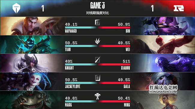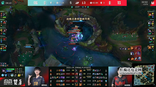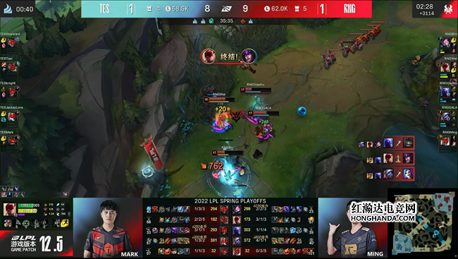 双方你来我往互相角力,在中期陷入了非常胶着的局面,两边一直拉扯到35分钟,TES按奈不住直接决策Rush大龙,想要打RNG一个措手不及,RNG第一时间赶来时的确速度较慢,但盲僧一人进入龙坑大招踢走人马抢到了大龙,接下来RNG众人追击分割将TES众人逐个击破打出团灭。TES为他们的决策付出了沉痛的代价,RNG一鼓作气推平基地拿下了比赛,2-1领先并且取得赛点,距离春决只有一步之遥!