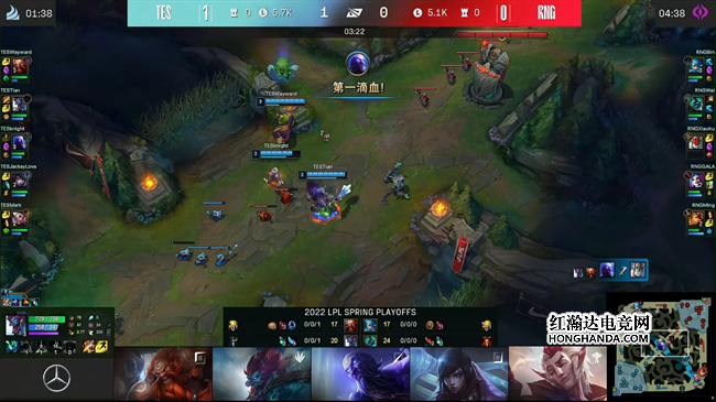2022 LPL春季赛季后赛胜者组决赛,TES与RNG两支顶尖战队在四强赛各自完成让二追三的壮举以后展开强强对话,争夺第一张进入春决的门票。两队棋逢对手势均力敌,带来了四局非常精彩激烈的大战,TES在1-2落后的情况下第四局前期取得了巨大优势,但RNG通过极其顽强的防守将比赛拖入后期,凭借成型的厄斐琉斯完成翻盘,最终以3-1的比分击败TES!TES只能吞下败果,进入败者组决赛和V5战队争夺最后一个进入春决的资格。