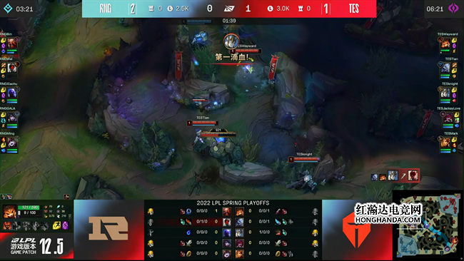 TES一级抱团入侵野区,成功抓死了盲僧反掉蓝Buff,盲僧不得已只能前往TES野区偷蓝弥补劣势,但TES早有准备,中辅全部包夹过来又将其击杀,虽然璐璐后续击杀了曙光,但盲僧迎来了天崩开局。TES双人组趁着璐璐没闪现,在RNG兵线进塔的时刻找到机会先手将其击杀,厄斐琉斯强换霞失败自己也随之阵亡。接下来TES开始非常活跃地联动进攻,三个人头在手的加里奥根本不惧对线被瑞兹压那一点点刀。