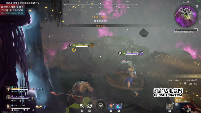 第二局开局天人城多方混战,17JL继续保持火热手感,早早拿到10个击败分。别人都在想方设法赚钱击败分,JTeam则是在默默的买返魂符救队友,显得有些心酸。第三次暗域蔓延,17JL跟GD飓风客争夺,17JL不费吹风之力击败GD后再战抖音KFC,面对两队车轮战还能满编获胜尽显强队风采。这一番战后17JL便无人能挡,一路清人继续收割击败分。第五次暗域蔓延,两个宁红夜先后交出奥义,让场上存活人员再度减少。乱战中17JL依靠出色远程火力赶人保持满编,最终决赛圈17JL3打2轻松击败JDG后斩获天选之人。超高击败分加上天选之人,让17JL单局拿到恐怖的41.8分。