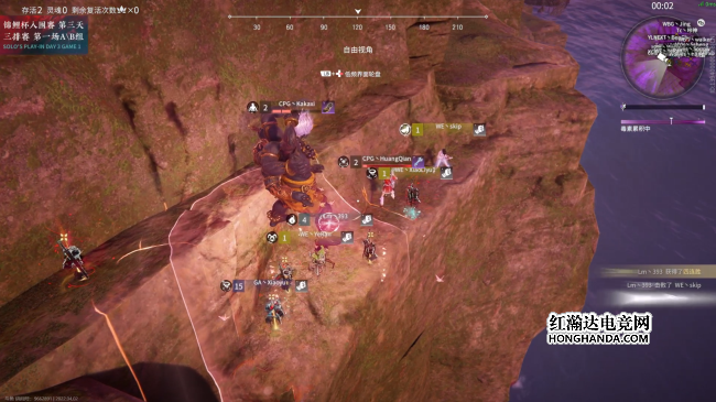 第二局天人城依旧很热闹,上局斩获天选之人的CPG也难在天人城乱战中存活掉入败者组。从天人城内打到城外,战火一直持续到第一次暗域蔓延结束。随后天人城内刷出飓风客,YZG见四下无人去开飓风客,不料遭到CPG埋伏。另一边拿到飓风客的JTeam一路干架,碰上WE时被宁红夜奥义控场,并用噬魂斩重创JTeam。随着圈逐渐缩小,跟第一局几乎同样的地形,场上同样存活大量选手。在这熟悉的环境下CPG大显身手不断收割击败分,17JL丶JuSha算准时机从天而降宁红夜控场收割击败分,吃一圈返魂花后再次开启奥义清场。眼看17JL形势大好,半路杀出来WBG,依靠奥义优势WBG斩获天选之人。但本局最高分还是CPG的30.2分,毕竟他们在乱战中收割了太多击败分。