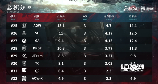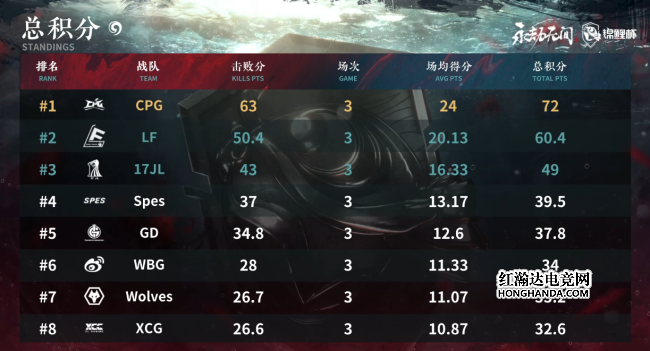 回顾今天比赛,CPG让人们眼前一亮,他们敢打敢拼又不失冷静的打法,一上来两局比赛超高得分帮他们打下良好基础。而像TeamCC这种以稳为主打法的战队,在这个版本并不吃香,即便是拿到天选之人,单局分数也不会很高。今天的比赛过后,各个队伍应该会作出相应的改变。尤其是作为劫杯冠军队伍JTeam,处于总积分下游位置肯定他们无法接受的。毕竟三排第一周是32进24赛制,排名靠后的八支战队需要作出正确的调整,才能避免被淘汰出局。