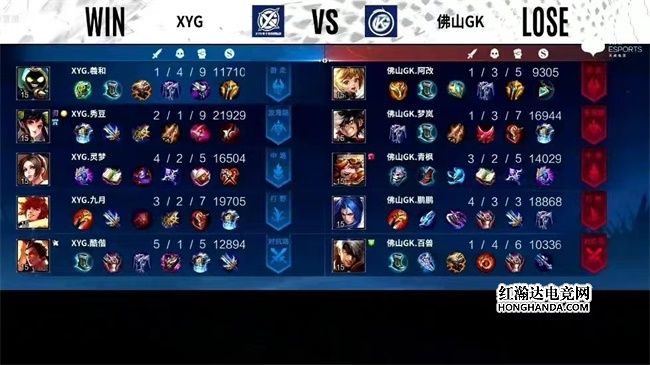 决胜局,2分钟,GK四人入侵敌方红区带走羲和太乙真人,鹏鹏橘右京拿下一血,3分钟,双方换龙,橘右京拿下暴君,九月裴擒虎拿下先知主宰,6分半,XYG中野带线被GK五人抓死,6分45秒,阿改孙膑开加速转敌方蓝区,橘右京二技能定住太乙真人,太乙真人交复活后被守尸,7分半,橘右京拿下先知主宰,8分半,裴擒虎拿下暴君,10分半,橘右京拿下暗影暴君,孙膑大招沉默到带线的裴擒虎,裴擒虎倒地,11分钟,橘右京拿下暗影主宰,12分钟,灵梦不知火舞闪现开到孙膑,孙膑倒地,梦岚蒙犽扫死不知火舞,青枫沈梦溪大招拍死两人,酷偕吕布跳大带走蒙犽,吕布二连击破止损,XYG三换四GK。