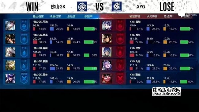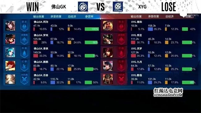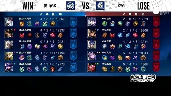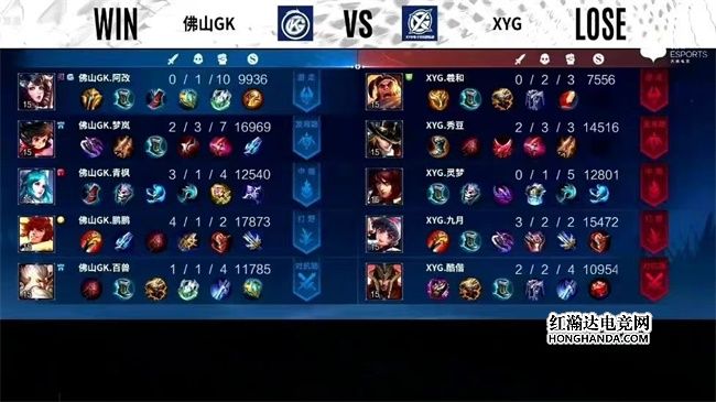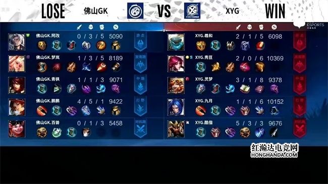 2022年KPL春季赛常规赛第三轮第一周第一个比赛日第二场比赛由XYG对阵佛山GK,这是一场S组的比赛,首轮中双方有过交手,XYG三比一战胜了佛山GK。最终,XYG三比二战胜佛山GK,XYG拿到第三轮首胜。