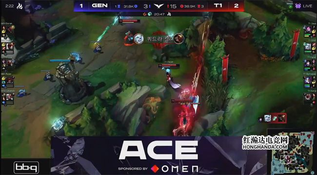 Doran在决胜局祭出本赛季LCK上单位的冷门英雄阿克尚,虽然前期压制了凯南的补刀,但在河道的视野发现了佛耶戈之后还是和凯南激进换血,佛耶戈顺利拿到一血。