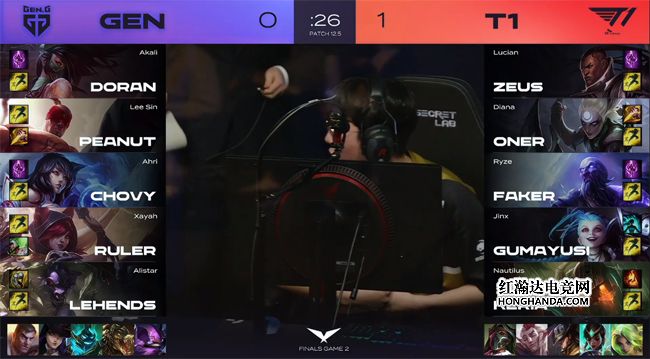 大龙出生前T1抱团抢到风龙,GEN下路一塔失守,经济落后6千。T1回城补满状态,放出第二只先锋推进中路,GEN试图在二塔前拦截先锋,为此付出的代价却是惨遭团灭,Oner的佛耶戈豪取四杀,T1转身无压力将大龙收入囊中!GEN防守上路水晶时,Peanut的盲僧摸眼R闪踢回了金克丝,两人互换倒地后GEN暂时守住了水晶,不过T1的经济仍然领先了1万。27分钟T1平推中路打出0换4一波结束比赛,3-1击败GEN夺得春季赛冠军,这也是T1队史第十座联赛冠军奖杯,同时Faker成为全球范围内第一位解锁联赛“十冠王”成就的职业选手!