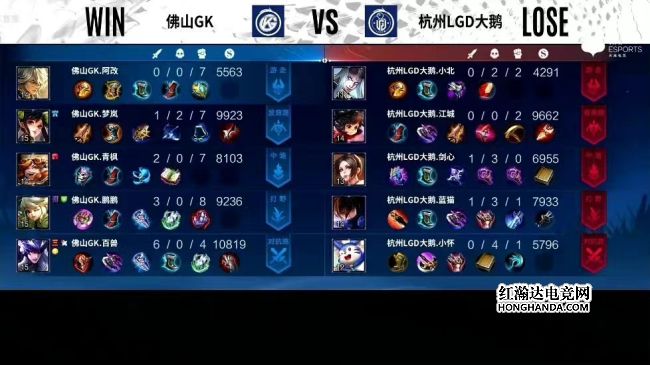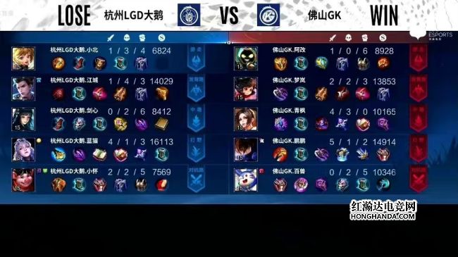 重回S组佛山GK战胜杭州LGD大鹅鹏鹏澜伪五杀奠定胜局