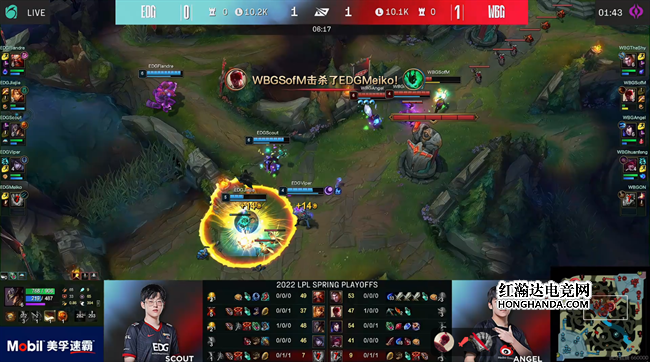 2022 LPL春季赛季后赛第二轮,EDG战队挑战WBG战队,两队都曾在常规赛前半段一路连胜,又在中后半段陷入了一段低谷期,如今季后赛重新出发,只有一支队伍能够继续前进,WBG在今天的BO5里带来了与常规赛后半段截然不同的表现,上野发挥非常亮眼带队取胜,而2021全球总决赛冠军EDG战队遗憾地以倒在了今年春季赛的八强,期待他们夏季赛能够重振旗鼓。