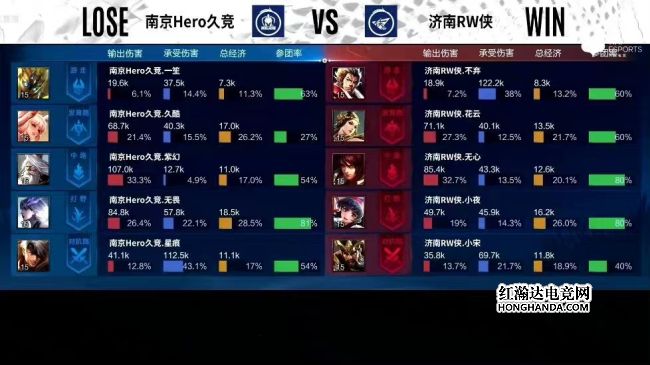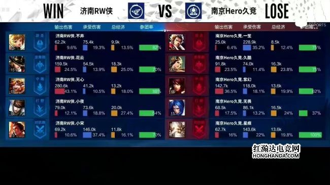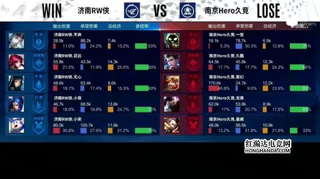 2022年KPL春季赛常规赛第二轮卡位赛第一场由济南RW侠对阵南京Hero久竞,本场比赛谁留谁进第三轮,谁输谁淘汰。最终,济南RW侠四比零战胜南京Hero久竞,济南RW侠冲进第三轮,南京Hero久竞无缘第三轮同时未能进入季后赛。