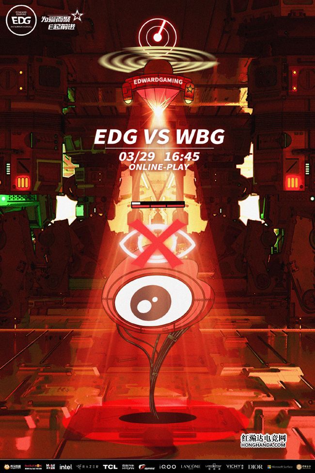 EDG的海报标题为“神谕透镜”,EDG红色小飞碟使用游戏内的“神谕透镜”,屏蔽了地面上WBG吉祥物大眼仔的视野。EDG在常规赛0-2不敌WBG,TheShy的格温不但在对线期压制了Flandre的男枪和鳄鱼,而且还统治了团战,今天Shy哥和圣枪哥再度交手值得期待!