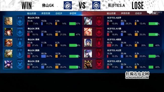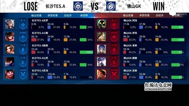 2022年KPL春季赛常规赛第二轮第四周第四个比赛日第一场比赛由长沙TES.A对阵佛山GK,这是一场A组的比赛,佛山GK已确定S/A组卡位赛资格,长沙TES.A确定留在A组。最终,佛山GK零封长沙TES.A,在第二轮保持不败,以小组第一的身份冲进卡位赛。