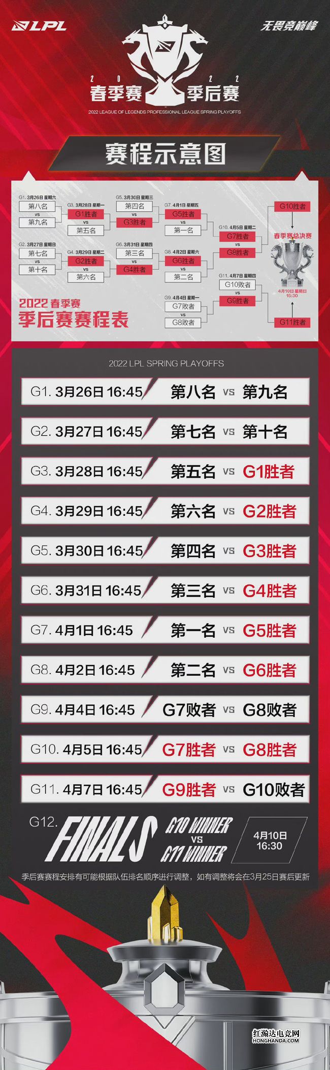 2022LPL春季赛季后赛赛程出炉:3月26日BLG、RA打响揭幕战!