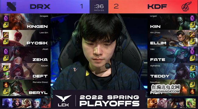 北京时间3月24日,LCK春季赛季后赛的第二场比赛由Teddy率KDF对阵Deft领衔的DRX!今天DRX的BP相当执着,为Deft连选三局霞但效果不佳,KDF上单Kiin的酒桶在团战中多次以“几何怪桶”炸回了霞,最终KDF鏖战五局完成“下克上”,3-2淘汰DRX晋级半决赛!