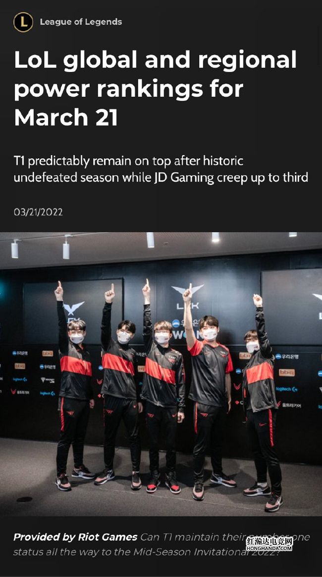 外媒更新全球LOL战队排行榜:T1力压V5排名第一!