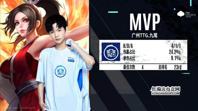 2022年KPL春季赛常规赛第二轮第三周第四个比赛日第三场比赛由广州TTG对阵杭州LGD大鹅,这是一场S组的比赛,两支战队近期状态都不够稳定,广州TTG遭遇三连败,杭州LGD大鹅两连败。最终,广州TTG零封杭州LGD大鹅,广州TTG终结三连败的同时送给杭州LGD大鹅三连败。
