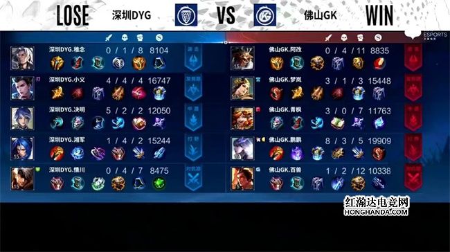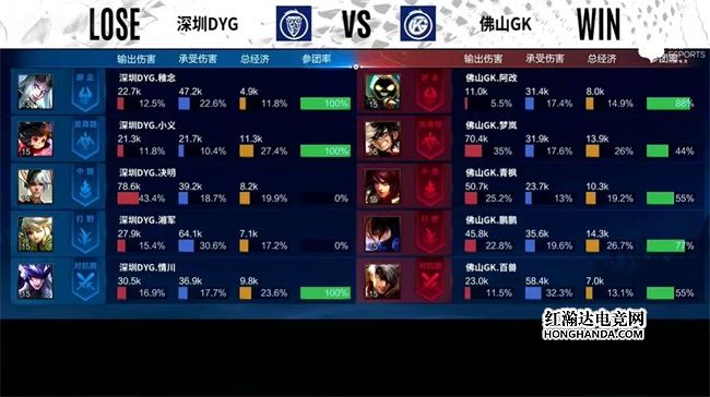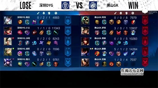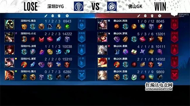 2022年KPL春季赛常规赛第二轮第三周第二个比赛日第二场比赛由深圳DYG对阵佛山GK,这是一场A组的比赛,佛山GK三连胜,距离卡位赛仅差一场胜利,深圳DYG一胜一负。最终,佛山GK零封深圳DYG,佛山四连胜进入S/A卡位赛。