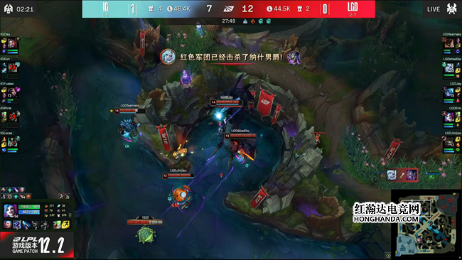 26分钟LGD在中路找到机会打出完美团战1换5团灭了iG,iG之前大意丢掉的门牙成为了伏笔,LGD一路强拆赶在iG队员复活之际推平了水晶枢纽,恭喜LGD让一追二2-1战胜iG!