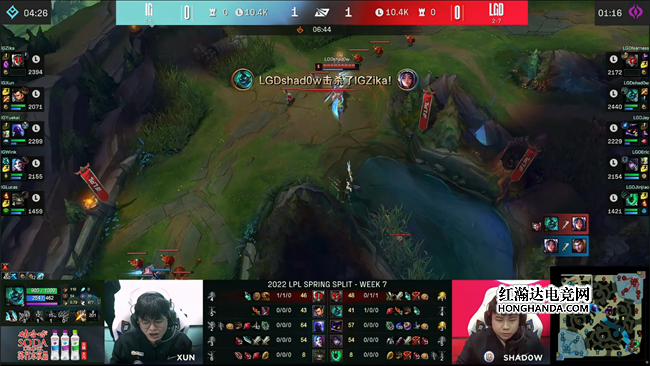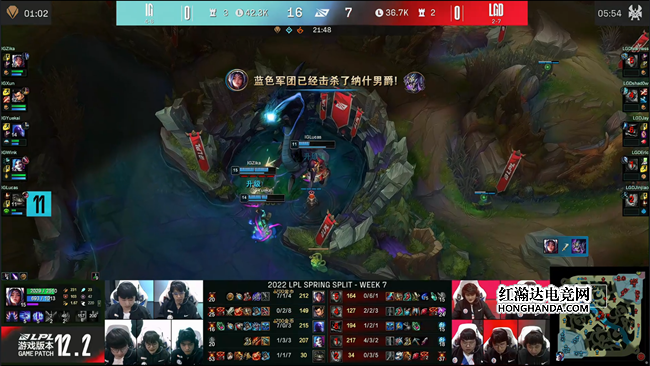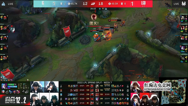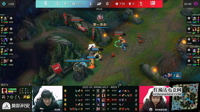 2022 LPL春季赛常规赛第七周首日,iG战队对阵LGD战队,面对近期状态火热的iG战队,LGD表现的非常顽强,在第一局较大劣势落败的情况下依然能够在第二三句奋起反击,通过稳健的资源控制和出色的团队配合连追两局,最终2-1战胜iG。