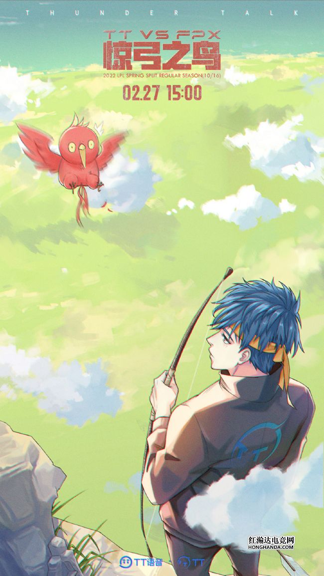 TT的海报标题是“惊弓之鸟”,身穿TT队服的蓝发少年登上山顶,手持弓箭正在选择狩猎目标,空中代表FPX的小火鸡看到TT少年的武器“光速破防”,反倒暴露了自己的位置。积分1-9的TT除了惨淡垫底以外,近期更是苦吞4连败,韩援中野还未迎来自己的首胜,究竟谁才能拯救这支TT呢?