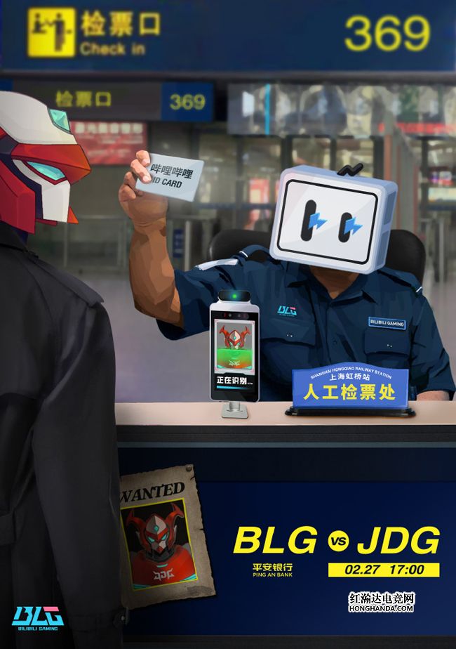 BLG的海报标题是“系统正在识别,请稍等”,BLG小电视正在上海虹桥站的人工检票处进行检票,身后第“369”号检票口自然暗示JDG上单369,“呼吸哥”Breathe和69哥的上路交锋值得期待~近期2连胜的BLG逐渐找回了状态,不过击败的对手AL和WE都在积分榜东部,而JDG排名第8不容小觑,不知BLG还能否继续连胜之路。